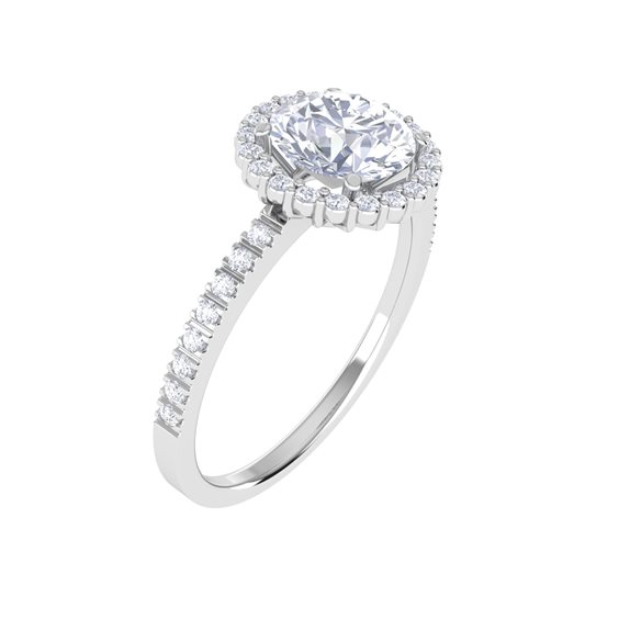 Anello in Oro Bianco 750/°°° con Diamanti Lab Grown. La pietra centrale pesa Ct. 1,00 VS2-E (Certificata IGI) mentre il contorno pietra e diamanti sul gambo pesano Ct. 0,15 per una caratura complessiva dell'anello di Ct. 1,15. La misura dito è 12 ma può essere personalizzata su richiesta presso il nostro laboratorio