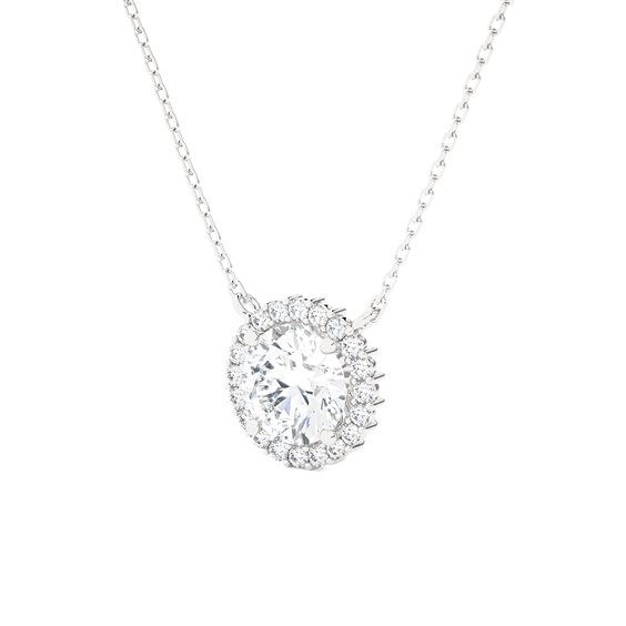 Collana in Oro Bianco riciclato 750/°°° (18 KT) con 1 diamante AMA LAB GROWN taglio ovale da Ct. 1,02 (VVS2-D) certificato IGI e contorno di diamanti AMA LAB GROWN taglio brillante di Ct. 0,15 (VS-F) per una caratura complesiva di Ct. 1,17 I diamanti AMA nascono dall’evoluzione tecnologica che permette all’uomo di ricreare in laboratorio le stesse condizioni presenti in natura che danno origine alla formazione di un diamante naturale senza il costo ambientale o umano dell'attività mineraria