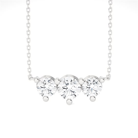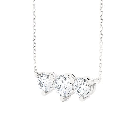 Collana Trilogy in Oro Bianco riciclato 750/°°° (18 Kt) con 1 diamante centrale Lab Grown taglio brillante da Ct. 0,50 (VVS2-D) e 2 diamanti laterali Lab Grown taglio brillante da Ct. 0,33 ct cad. (purezza minima VS e colore minimo F) per una caratura totale di Ct. 1,16