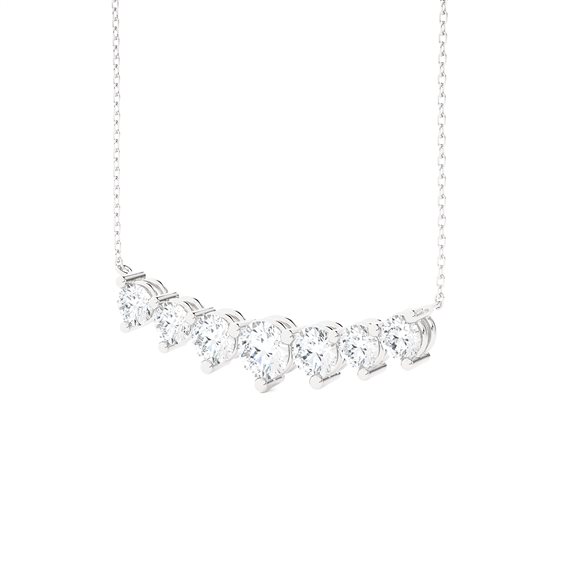 Collana in Oro Bianco riciclato 750/°°° (18 KT) con 7 diamanti AMA LAB GROWN taglio brillante per una caratura complessiva di Ct. 1,78 (VS-F) I diamanti AMA nascono dall’evoluzione tecnologica che permette all’uomo di ricreare in laboratorio le stesse condizioni presenti in natura che danno origine alla formazione di un diamante naturale senza il costo ambientale o umano dell'attività mineraria