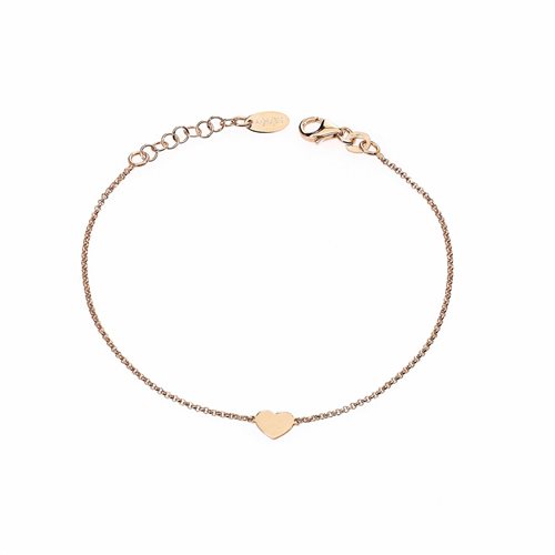 Bracciale argento 925 finitura rosata con cuore; lunghezza personalizzabile da 17 a 19 cm