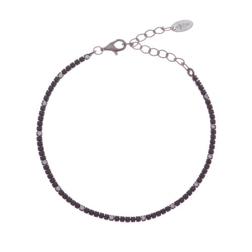 Bracciale in AG925 con zirconi neri e bianchi - Rutenio - (Lungh. 17 + 3,5 cm; Ø 1 mm)