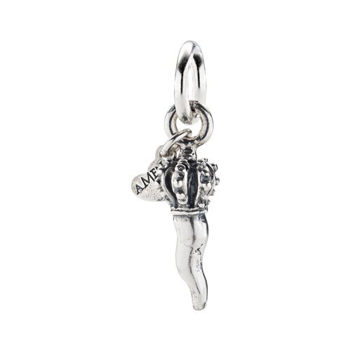 Charm in Argento 925 corno con corona - Brunito - Dimensioni 8 x 18 mm - corredato da shopper, scatola e garanzia