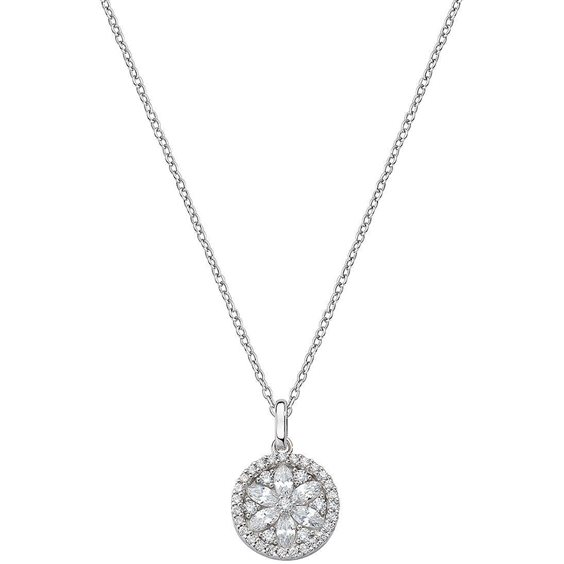 Collana Da Donna Di Amen Della Collezione Fiore Della Vita. Collana Realizzata In Argento 925 Rodiato Con Pendente Con Fiore Di Zirconi Bianchi. Lunghezza: 40 + 4Cm. Dimensione Charm: Ø 1,1Cm. La Referenza È Clflbbz1.