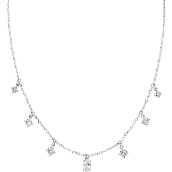 Collana da donna di Amen. Gioiello in argento 925 con placcatura in rodio e zirconi bianchi. La lunghezza è: 38 + 5 cm