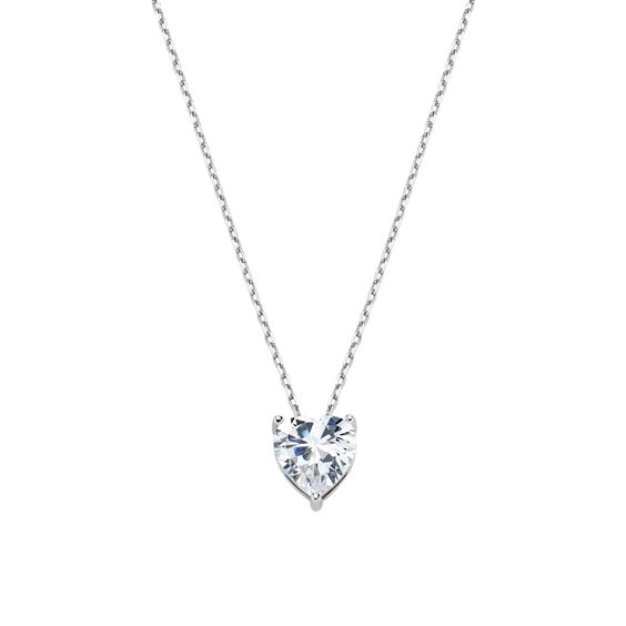 Collana Solitario Cuore Bianco Collana in AG925 e zircone bianco - Rodio - Lunghezza 40 + 5 cm Ø 0,8 cm