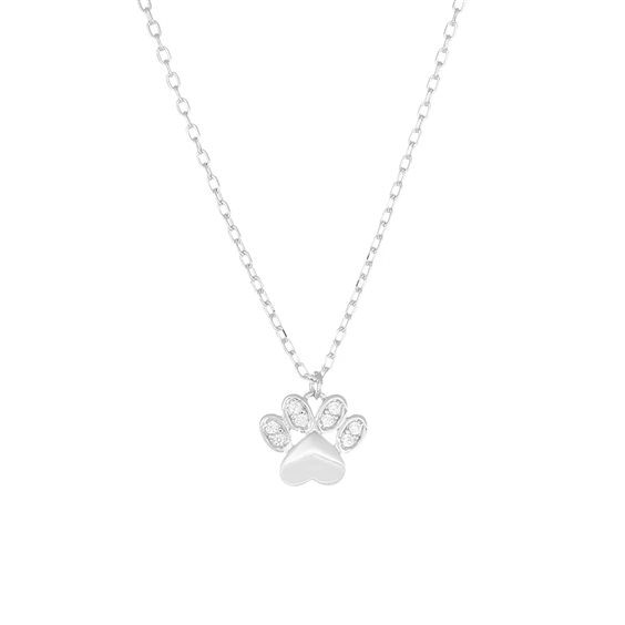 Collana Zampina con Zirconi Bianchi Collana a catena in Argento 925 rodiato. Pendente a forma di zampa con dettagli in zirconi bianchi. Lunghezza regolabile da 40 a 45 cm con chiusura a moschettone.