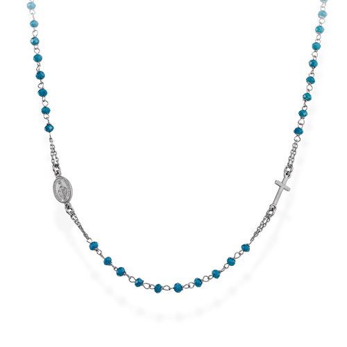 Rosario Girocollo Cristalli Blu - Rosario girocollo in Argento Cristalli blu pastello - Rutenio - Lungh. 50+2cm - Grani Ø 3mm