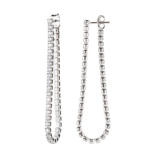 Orecchini Doppio Tennis con Zirconi - Orecchini in AG925 con zirconi bianchi - Rodio - 5 cm
