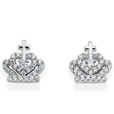 Orecchini Amen in Argento 925/°°° rodiato a forma di corona tempestati di zirconi bianchi; diametro circa 1 cm