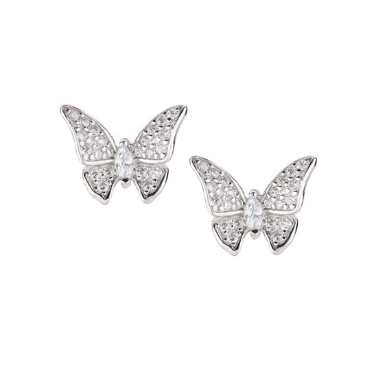 Orecchini Diamonds Farfalla Grande con Zirconi - Orecchini in AG925 con zirconi bianchi - Rodio