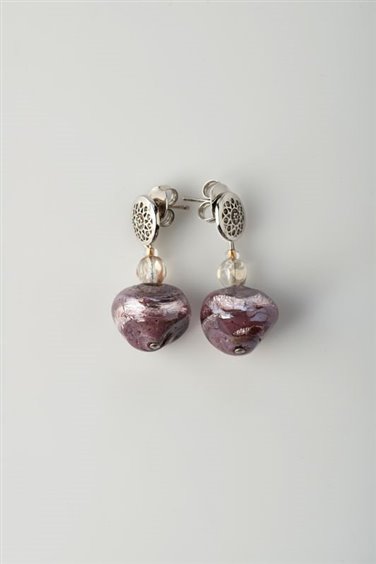 ORECCHINI DONNA ANTICA MURRINA VENEZIANA CON PERLE IN VETRO CON FOGLIA ARGENTO E METALLO ANALLERGICO.