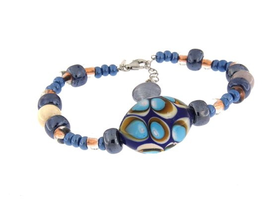 Bracciale da donna con perle di Vetro di Murano multicolore su base blu; chiusura e finali in Argento 925/°°° Lunghezza personalizzabile da 18,5 a 20,5 cm