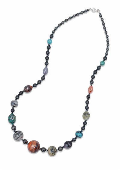 Collana con perle di Vetro di Murano multicolore con chiusura e catenella finale in Argento 925/°°°