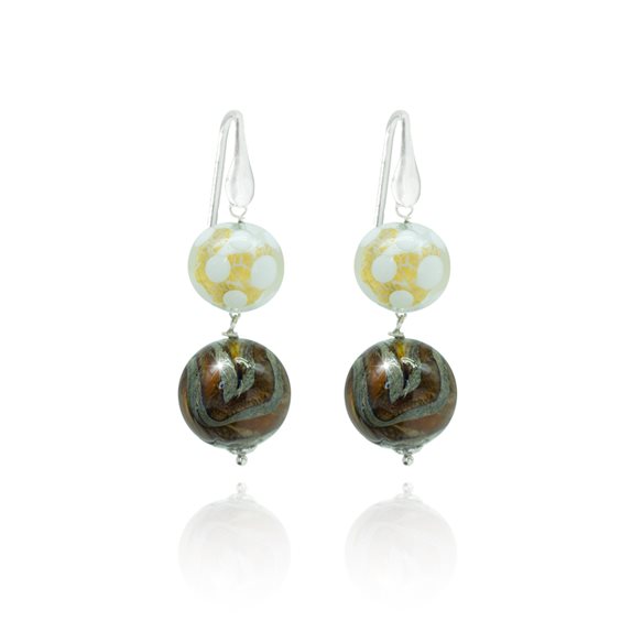 Orecchini eseguiti artigianalmente con perle di Vetro di Murano multicolore su tonalità beige ed elementi in Argento 925/°°°