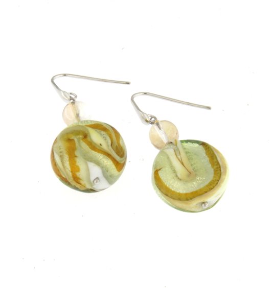 Orecchini in Argento 925/°°° con perle di Vetro di Murano di colore giallo eseguiti artigianalmente da maestri vetrai veneziani