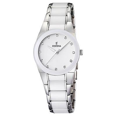 Orologio donna solo tempo, cassa in acciaio con cinturino in acciaio e ceramica higt-tech bianca , movimento al quarzo MGL30 , vetro minerale, water resistant 5 ATM, quadrante bianco con zirconi bianchi sugli indici, misura diametro 30mm , fondello a pressione , vetro minerale con lunetta bianca , cinturino regolabile , chiusura con pulsanti.