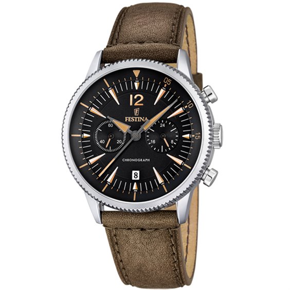 Orologio uomo , cassa in acciaio 316L , movimento cronografo MOS21 , cassa mm 41 , quadrante nero , vetro minerale , datario , fondello a pressione , cinturino in pelle marrone con cuciture a vista. L'immagine è indicativa , la confezione può variare di forma e colore.