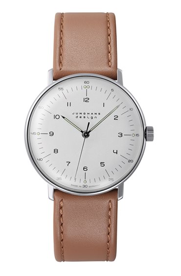 Nel 1961 Max Bill progettò, in collaborazione con Junghans, una serie di orologi da polso meccanici che produciamo ancor oggi quasi senza modifiche: dal quadrante minimalista con le inconfondibili cifre arrotondate al vetro curvo che enfatizza il fascino storico dell’orologio. Cassa in acciaio inossidabile con vetro zaffiro e movimento a carica manuale calibro J805.1 con riserva di carica di 42 ore. Cinturino in pelle con fibbia ad ardiglione in acciaio inossidabile