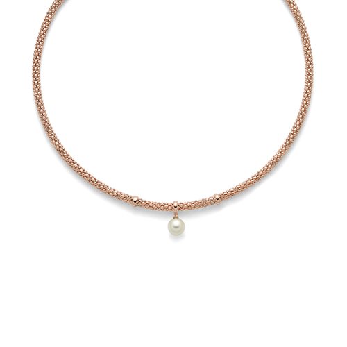 Collana donna , argento 925% , trattamento in PVD oro rosa , maglia modello fope , girocollo lunghezza cm 45 regolabile fino a cm 43 , distanziali in argento liscio , perla pendente bianca , coltivata in acqua dolce , mm 8.5-9 Immagine indicativa , la confezione può variare di forma e colore , scatola garanzia originali.