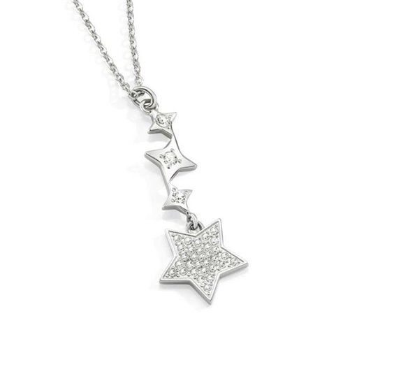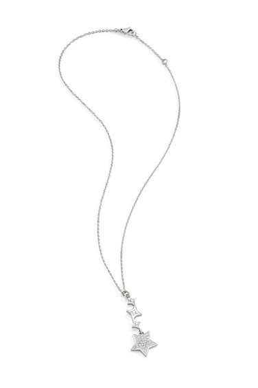 Collana donna in acciaio 316L , girocollo maglia rolò , lunghezza cm 45 con messa a misura fino a cm 42 , pendente lunghezza cm 4 con cristalli bianchi. Immagine indicativa , la confezione può variare in forma e colore.