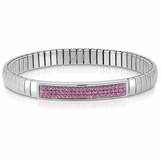 Bracciale in acciaio anallergico elasticizzato con cristalli Swarovsky di colore viola. Misura personalizzabile su richiesta.