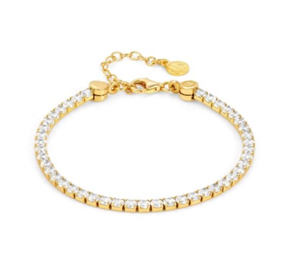 Bracciale in Argento 925 con rivestimento superficiale in Oro Giallo 999 e con Cubic Zirconia bianchi. Lunghezza: 20 cm messa a misura 16 cm. Made in Italy. Regala questo bracciale per far colpo sulla tua amata!