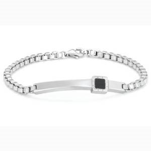Bracciale a catena in acciaio inossidabie con piastrina lucida; inserto tondo in smalto di colore nero