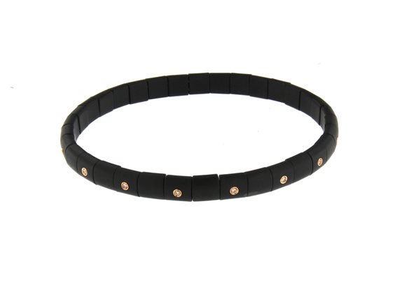 Bracciale elasticizzato in ceramica satinata nera di alta qualità con 15 castoni in Oro rosa 750/°°° arricchiti da 15 diamanti brown; misura polso personalizzabile su richiesta