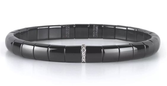 Braccialetto Unisex Roberto Demeglio Pura. Bracciale elastico in oro 18k diamanti bianchi e ceramica high tech nera lucida. Garanzia a vita. Collezione Pura lucida, oro e diamanti giocano per creare volumi solidi e definiti, resi morbidi da una molla interna che permette di indossarli comodamente ogni giorno.