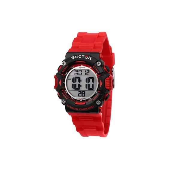 Orologio Digitale Da Uomo Di Sector Della Collezione Ex-32. Orologio Realizzato In Abs, Pu Con Cassa Abs Plastic, Dimensione: 40Mm. Il Cinturino È Di Color Rosso In P2. Orologio Con Lente In Plastica E Resistenza All'Acqua Di 10 Atm.