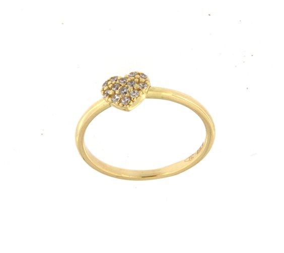 Anello in Oro Giallo 750/°°° (18 Kt) con cuore tempestato di zirconi; misura anello numero 10 personalizzabile su richiesta presso il nostro laboratorio