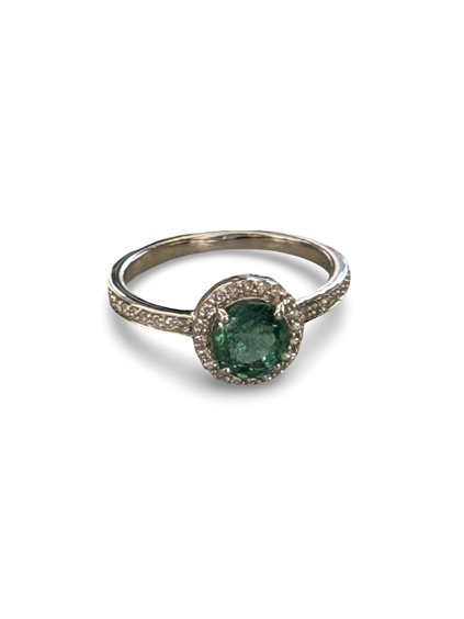 Anello in Oro Bianco 18 Kt con Smeraldo Naturale (Ct.0,83) e Brillanti Naturali (Ct.0,21) Misura dito numero 13 personaizzabile su richiesta presso il nostro laboratorio