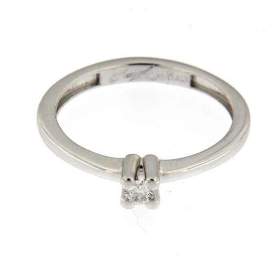 Anello solitario in oro bianco 750/°°° con diamante naturale taglio brillante; misura 15 personalizzabile presso il nostro laboratorio