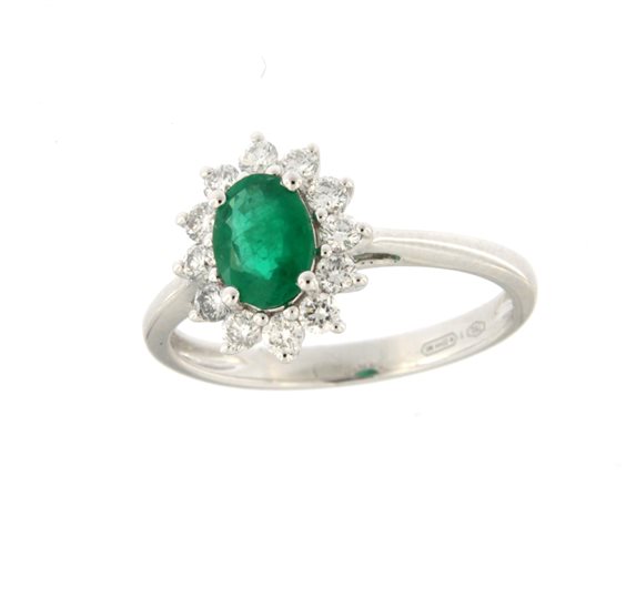Anello da donna in Oro Bianco 750/°°° (18 Kt) con Smeraldo Naturale Ct.0,73 e Brillanti Naturali Ct.0,42 (VS2-G). Misura dito 15 personalizzabile su richiesta