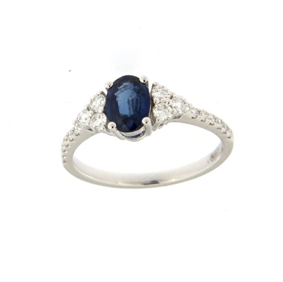 Anello in Oro Bianco 750/°°° (18 Kt) con Zaffiro Naturale Ct.0,92 e Brillanti Naturali Ct.0,40 VS2-G. Misura dito 14 personalizzabile presso il nostro laboratorio orafo su richiesta