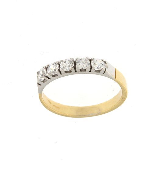 Anello riviera in oro bicolore 750/°°° (18 Kt) con Zirconi; misura personalizzabile presso il nostro laboratorio orafo su richiesta