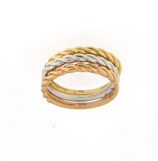 Anello a fascia composto da 3 singoli anelli in Oro 750/°°° (18 Kt) giallo,bianco e rosa. Gli anelli possono essere indossati in maniera disgiunta o indossati assieme dando l'effetto di un'unica fascia. La misura degli anelli è personalizzabile presso il nostro laboratorio orafo su richiesta