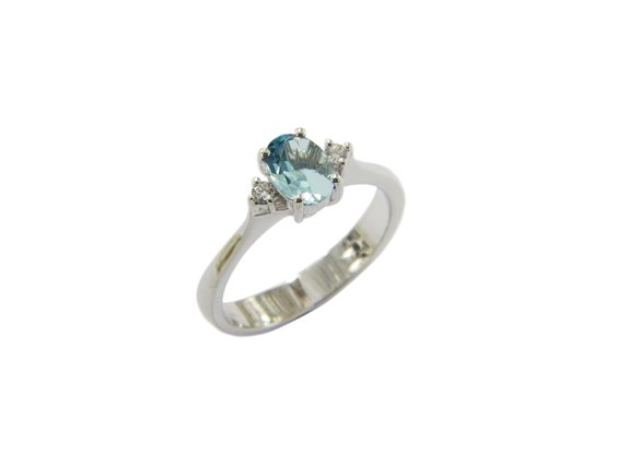 Anello in Oro bianco 750/°°° con Acquamarina naturale (Ct.0,80) e Brillanti naturali (Ct. 0,06). Misura numero 13 facilmente personalizzabile su richiesta presso il nostro laboratorio.