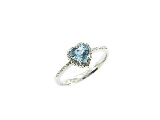 Anello in Oro bianco 750/°°° con Acquamarina naturale a cuore (Ct.0,80) e Brillanti naturali (Ct.0,19). Anello misura n°15 personalizzabile presso il nostro laboratorio su richiesta