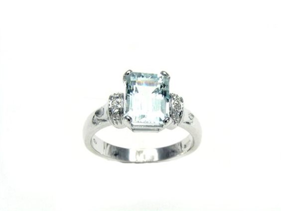 Elegante anello in Oro Bianco 750/°°° (18 Kt) con Acquamarina Naturale di Ct.2,00 e Diamanti Naturali di Ct.0,04 (VS-G); misura dito numero 16 personalizzabile su richiesta