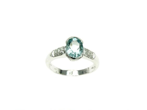 Elegante anello in Oro Bianco 750/°°° (18 Kt) con Acquamarina Naturale di Ct.1,15 e Diamanti Naturali di Ct.0,09 (VS-G); misura dito numero 16 personalizzabile su richiesta
