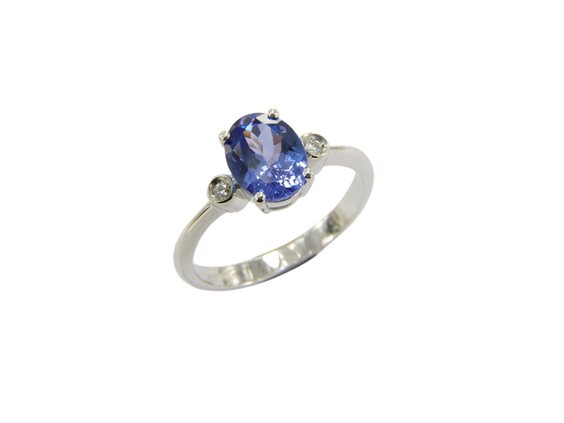Elegante anello in Oro Bianco 750/°°° (18 Kt) con Tanzanite Naturale di Ct.1,60 e 2 Diamanti Naturali di Ct.0,03 (VS-G); misura dito numero 16 personalizzabile su richiesta