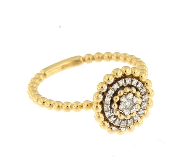 Anello in Oro Giallo 18 Kt. (750/°°°) con lavorazione pallinata e Brillanti naturali di Ct. 0,14 (VS-G). Misura dito numero 14 personalizzabile su richiesta