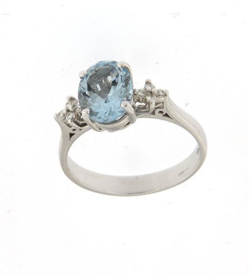 Anello in Oro Bianco 750/°°° di nostra produzione con Acquamarina Naturale di Ct.1,64 e Brillanti Naturali di Ct.0,09. Misura dito personalizzabile su richiesta