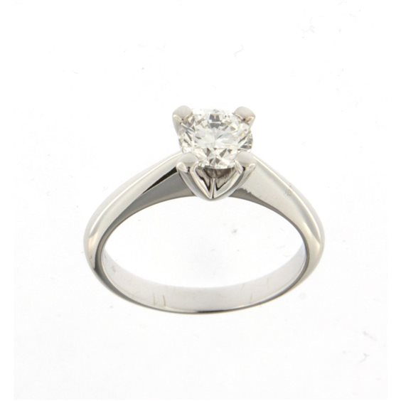 Solitario in Oro bianco 750/°°° con Diamante Naturale taglio Brillante di Ct. 1.02 (VS1-G). Misura dell'anello n°14 personalizzabile su richiesta presso il nostro laboratorio. Il brillante è dotato di certificato di garanzia
