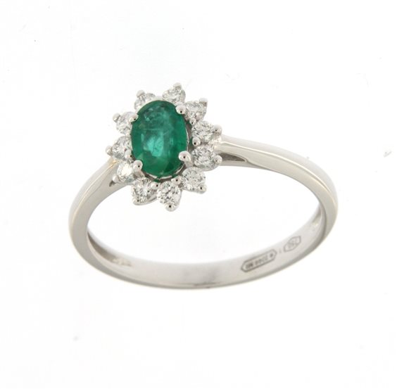 Anello in Oro Bianco 750/°°° con Smeraldo Naturale (Ct.0,41) e Brillanti Naturali (Ct.0,28); misura personalizzabile su richiesta
