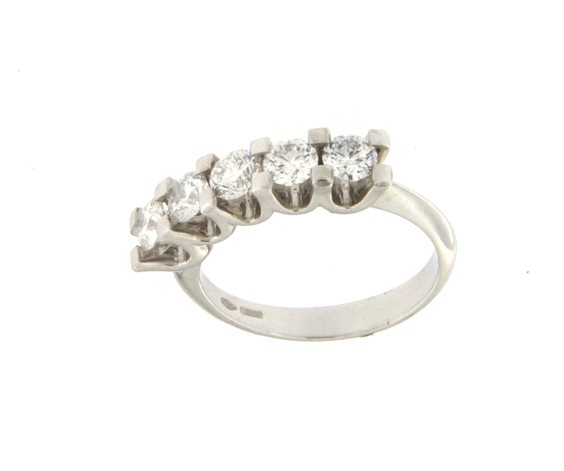 Riviera in Oro Bianco 750/°°° (18 Kt) con 5 Brillanti per una caratura totale di Ct. 1,20; misura dito numero 15 prsonalizzabile su richiesta presso il nostro laboratorio
