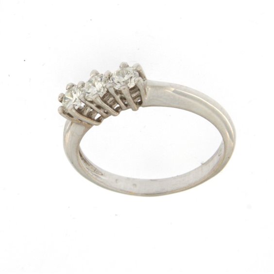 Trilogy in Oro bianco 750/°°° di nostra produzione con diamanti taglio brillante carati 0,54 (VS-G). Misura anello n°15 personalizzabile su richiesta presso il nostro laboratorio