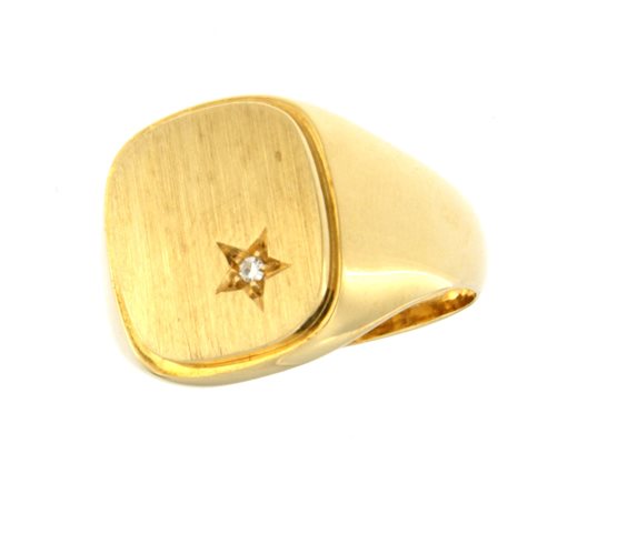 Anello da uomo in oro giallo 750/°°°(18Kt) con scudo satinato impreziosito da un brillante.